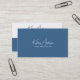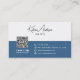 This modern and minimalist business card design features a sophisticated two-tone layout with a blue and white colour scheme. The front showcases a sleek, handwritten-style name or business name in an elegant script font, paired with a clean, professional sans-serif font. The back maintains a cohesive aesthetic, incorporating essential contact details, a scannable QR code for easy digital access, and social media icons (use the design tool to remove any irrelevant icons) for a contemporary touch. Perfect for professionals, entrepreneurs, and creatives, this stylish and customisable design exudes professionalism and elegance while maintaining a modern, approachable feel.