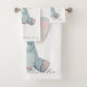 Modern script monogram cute animal elephant blue bath towel set