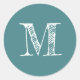 Modern Script Monogram Initial Teal Classic Round Sticker