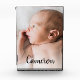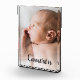Modern Name Script Baby Vertical Photo Block - When we started having children my parents and in-laws kept asking for more photos of the baby. It's one thing to send them digital images, but a framed keepsake with a beautiful shot and baby's name is another. I was inspired to design this baby photo block for all the proud parents, godparents, uncles, aunts and grandparents out there. Display this elegant gift on your desk or mantel. Personalise baby's name and photo.