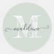 Modern Script Name Monogram Initial Pastel Green Classic Round Sticker
