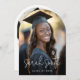 Arch shaped photo announcement card featuring your photo and the graduate's name in a modern, elegant script font with the year below. Add an additional photo and a custom message on the back.