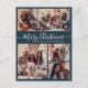 Modern Script Navy 5 Photo Collage Christmas Postcard