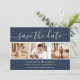 Modern Script Navy Blue and Silver Wedding 4 Photo Save The Date