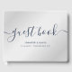 Modern Script Navy Blue and Silver Wedding Guest Book