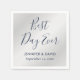 Simple, yet elegant navy blue and silver wedding paper napkins with a modern script font. Best day ever wedding napkins. Matching items available.