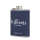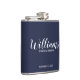Modern Script Navy Blue Personalised Groomsmen Flask