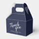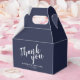 featuring word 'Thank you' in white modern script font with name and date in modern sans serif font on navy blue background.