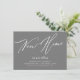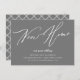 Grey New Home new address announcement featuring a modern script font with a coordinating plaid back for an extra touch.