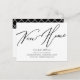 Black and white new home new address announcement featuring a modern script font with a coordinating plaid back for an extra touch.