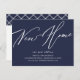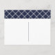 Navy blue new home new address announcement featuring a modern script font with a coordinating plaid back for an extra touch.