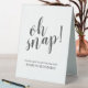 featuring title "Oh Snap!" in modern script font with details in modern sans serif font on white background.