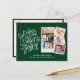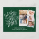 Modern White Script on Green "Good Tidings of Comfort and Joy" 4 Photo Collage Minimalist Postcard. Send Holiday Greetings to your loved ones with this minimalist and modern Christmas Holiday Postcard. All the texts are pre-arranged for you to personalise easily and quickly with your own details. Happy Holidays!