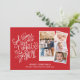 Modern Script on Red "Good Tidings of Comfort and Joy" 4 Photo Collage Minimalist Holiday Card. Send Holiday Greetings to your loved ones with this minimalist and modern Christmas Holiday Card. All the texts are pre-arranged for you to personalise easily and quickly with your own details. Happy Holidays!