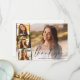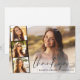 Modern graduation thank you card featuring the graduate's photo overlayed with a strip of three smaller square photos, "thank you" in a stylish script, and their name, school and class year in simple typography. On the reverse side, personalise a thank you message and the graduate's name in a signature-like script.