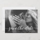 The design features a black overlay behind the text, enhancing readability while complementing your chosen photo. The modern script font adds a touch of sophistication and charm, making this save the date card a beautiful keepsake.