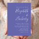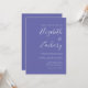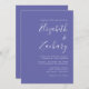 This simple modern wedding invitation features white text on a trendy periwinkle background. Add the names of the bride and groom in stylish handwriting calligraphy and the details in sans serif font. The reverse side is a matching shade of solid periwinkle.