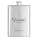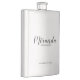 This flask features personalised bridesmaid's name in grey modern script font style with title and wedding date in grey modern sans serif font style.