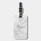 This luggage tag features personalised bridesmaid's name in grey modern script font style with title and wedding date in grey modern sans serif font style on white marble background.