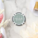 This design features personalised bridesmaid's name in white modern script font style and monogram in sage green modern script font style as background with title and wedding date in white modern sans serif font style on sage green background.