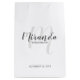 featuring personalised bridesmaid's name in grey modern script font style and monogram in light grey modern script font style as background with title and wedding date in grey modern sans serif font style on white background.