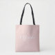 featuring personalised bridesmaid's name in white modern script font style with title and wedding date in modern sans serif font style on blush pink background.