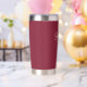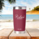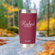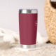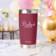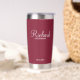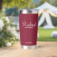 featuring personalised groomsman's name in white modern script font style with title and wedding date in modern sans serif font style on burgundy red background.