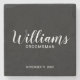 featuring personalised groomsman's name in white modern script font style with title and wedding date in modern sans serif font style on black background.