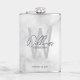 This design features personalised groomsman's name in grey modern handwriting script font style and monogram in light grey modern sans serif font style as background, with wedding details in grey modern sans serif font style, on white marble background.