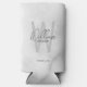 This design features personalised name in grey modern handwriting script font style and monogram in light grey modern sans serif font style as background, with wedding details in grey modern sans serif font style, on white marble background.
