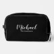 featuring personalised groomsman's name in white modern script font style with title and wedding date in modern sans serif font style on black background.