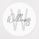 This design features personalised name in grey modern handwriting script font style and monogram in light grey modern sans serif font style as background, on white background.