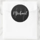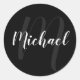 Modern Script Personalised Monogram and Name Black Classic Round Sticker