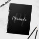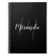 featuring personalised name in white modern script font style and monogram in grey modern script font style as background on black background.