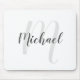 featuring personalised name in grey modern script font style and monogram in light grey modern script font style as background