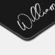 This design features personalised name in white modern handwriting script font on black background.