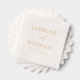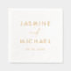 Elevate your wedding reception, engagement party, or rehearsal dinner with our Modern Foil Script wedding napkins. These custom napkins showcase your names and wedding date in sleek, modern lettering, enhanced by a sophisticated handwritten gold foil script for a stylish accent. Perfect for adding a personalised and elegant touch to your modern wedding, this design combines simplicity and charm to impress your guests. Personalise yours today for an unforgettable celebration!