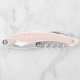 This design features personalized bridesmaid's name in white modern script font style and monogram in light blush pink modern script font style as background with title in white modern sans serif font style on blush pink background.