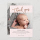 This modern 2 photo thank you note features rose gold handwritten script thank you, personal message and photo on the front. The back includes a second baby photo that is a full bleed vertical photo. Click the edit button to customise this design with your photos and details.