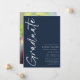 This is a minimalist and modern dark blue graduation announcement card. It is a simple and stylish handwritten script design in classic blue and white, with a photo at the back. Please contact the designer for any queries about this design.