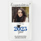 This vertical banner features a graduation design with a square photo for a picture of the graduate. Personalise this modern banner with the graduate's name. The text reads "Congratulations! Class of 2025 Grad" with the year appearing in blue. The design is accented with calligraphy text and a graphic of a graduation cap.