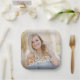 This graduation party paper plate features a square photo that fills the entire plate and is accented with modern script text on top of the photo. Personalise with the graduate's name and graduating year.