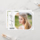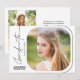 This modern script graduation party invitation features handwriting style text and a square photo with rounded corners. The backside offers a second vertical photo and custom text for you to add your party invitation details.