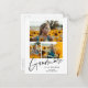 A Modern Script Photo Collage Graduation Announcement with 3 photos, handwritten font with name and graduation details on the front. The back has an additional photo and details. Click the edit button to customise this design.