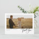 An elegant and modern wedding thank you card. Your horizontal photo on the front will be cropped to fit the rectangle shape, and you can personalise the template with your first names and wedding date. Re-colour, re-size, and re-position the "Thank You" text as needed. On the back of the card, you have room for a vertical photo as well as a heartfelt personalised message and signature line. © Kimbellished, LLC