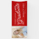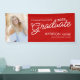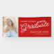 This graduation banner features a vertical photo on a red background. The design is accented with modern handwritten style script.
