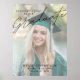 A modern and elegant graduation welcome poster to surprise your newly grad. It features a script lettering and a photo of the graduate.