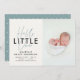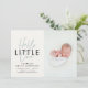 Modern script photo hello little one simple stylish birth announcement. Modern polka dot backer.