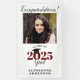 This vertical banner features a graduation design with a square photo frame for a picture of the graduate. Personalize this modern banner with the graduate's name. The text reads "Congratulations! Class of 2025 Grad" with the year appearing in maroon. The design is accented with calligraphy text and a graphic of a graduation cap.