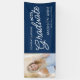 This graduation banner features a vertical photo on a dark navy blue background. The design is accented with modern handwriting script.